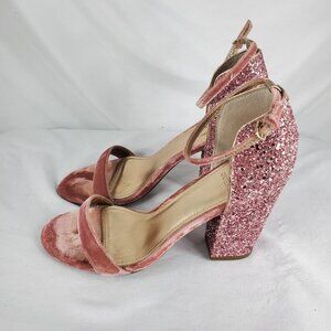 Guess Women's Pink Ankle Strap Sandals BamBam Glitter Open Toe Size 8M