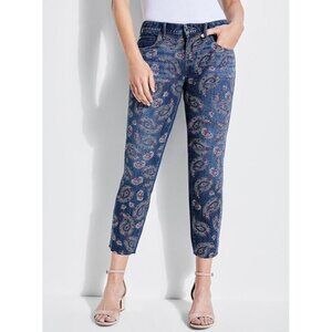 Guess Women’s Psychedelic Tom Boy Jeans Relaxed Fit Embroidering Paisley Size 30
