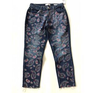 Guess Women’s Psychedelic Tom Boy Jeans Relaxed Fit Embroidering Paisley Size 31