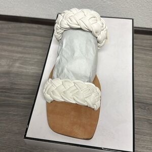 Stylish white braided sandals with a chic design. Perfect for any occasion.