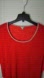 Red top trimmed with a beige/ cream neckline and fitted beige/ cream side tie hem