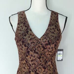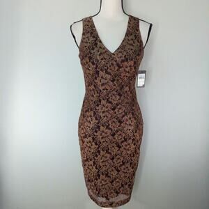 NWT Guess Women's Red Metallic Lace Sleeveless Open-Back Bodycon Dress Size 4