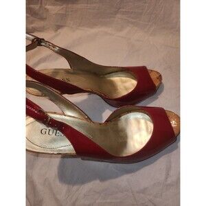 Guess Women's Red Peep Toe Patent Leather Stiletto Heels Pumps Size 7.5 M