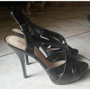 Guess Women's Sandals Black Platform Heels Stiletto Bow Shoes Size 7M