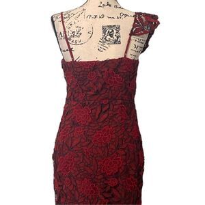 Guess Women's Scarlet Red Teegan Assymetrical Sleeve Lace Dress Size Small