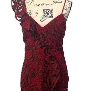 Guess, Lace Dress, Scarlet Red, Assymmetrical Dress, Elegant Party