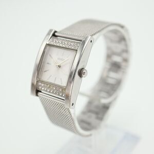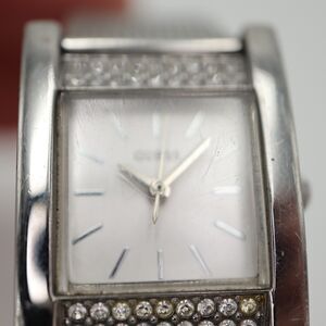 Guess Womens Silver Tone Tank Watch 22mm Rectangle Jewel Bezel with New Battery