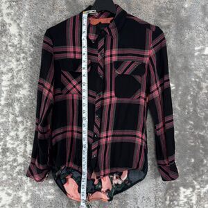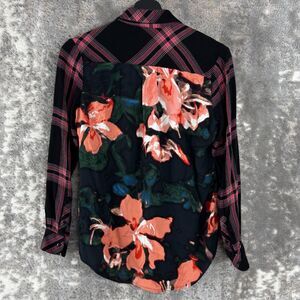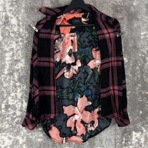 Guess Womens Size XS Plaid Floral Button Shirt Pink Black Long Sleeve Button