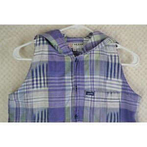 Guess Women's Small Purple Plaid Sleeveless Hooded Button Down Shirt