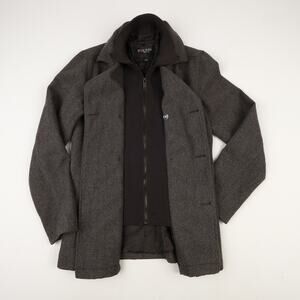 Guess Womens Small Wool Blend Double Breast Bib Insert Peacoat Herringbone Gray