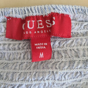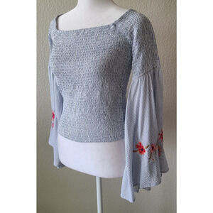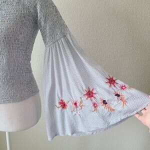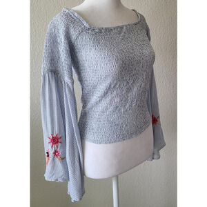 Guess Womens Smocked Embroidered Top SZ Medium Flare Bell Sleeve Floral Bohemian