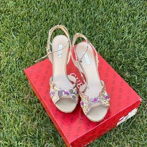 Crossover strap design on front. Metal heel cap.