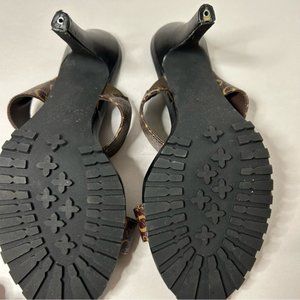 Guess Women’s Strappy Slip On Heels Size 10 Black Sole Brown Upper Guess Logo