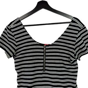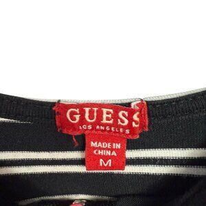 Guess Womens Striped 1/4 Zip Front Top Size Medium Black White Scoop Neck