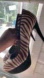 Elegant Guess heels. Perfect for adding flair to any outfit. Bold brown and light blue stripes