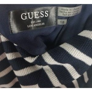 Guess Women's Sz. 10 Navy & White Striped Knit Bandage Knee Length Dress is in gently used condition.
