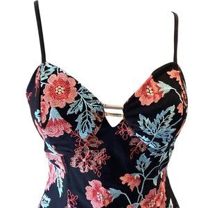 Guess Womens Sz 6 Embroidered Fit and Flare Mesh Dress 310F