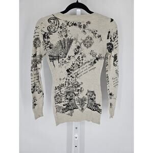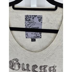 Guess Womens Sz S Long Sleeve Fitted Lightweight Sweater Gray Sequins Y2K