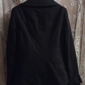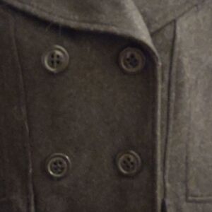 Guess wool blend jacket, soft black, double-breasted, two front pockets, wide collar, women's size small, excellent condition