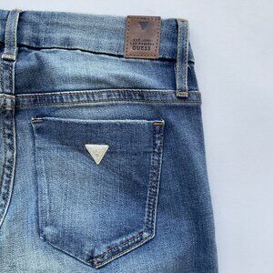 Guess Women’s Tailored Mini Boot Cut Jeans In Blue Denim Size 25