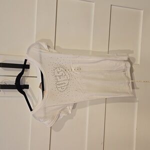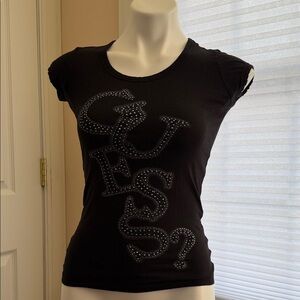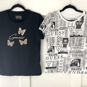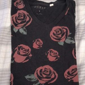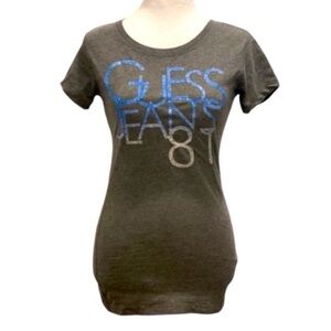 Stylish Guess tee with a unique graphic. Soft fabric for everyday comfort. Ideal for casual wear. Used but makes it look better with the vintage washed fabric. The fabric is not consistent. Great tee shirt!