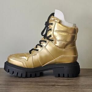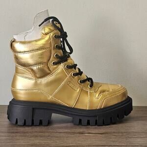 Guess Women's Tisley Combat Booties 6.5 Metallic Gold NWT