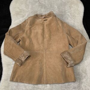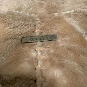 Guess Womens Vtg Tan Suede Leather Whipstitch Patchwork Sherpa Lined Jacket SZ L
