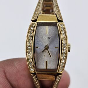 Guess Women's Watch 18MM Gray Dial Crystal Bezel Gold Bracelet 6" New Battery