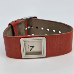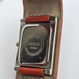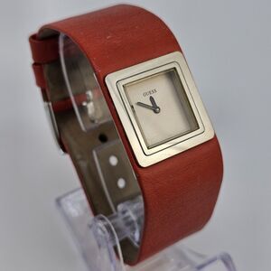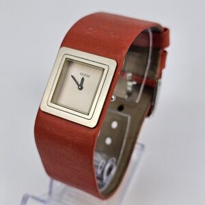 Guess Women's Watch 26MM Cream Dial Orange Leather Band Strap New Battery.