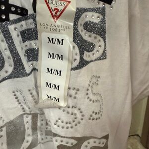 Chic white tee with bold Guess logo. Perfect for casual outings.