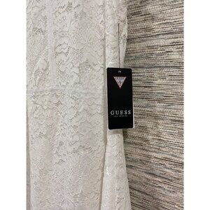 Guess Womens White Sleeveless Lace Dress With Back Button Detail - Size S