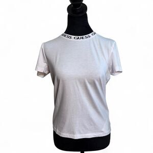 Casual short-sleeve tee featuring logo-tape trim on the crew neckline.