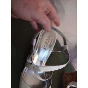 Guess Women's Wedge Heel in size 8 is a strappy sandal made of white leather. The wedge heel style provides comfort and style, making it perfect for any occasion.
