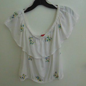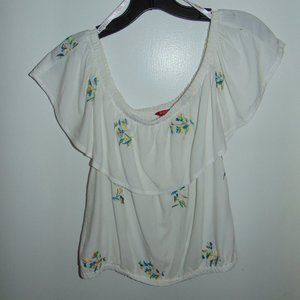Guess Women’s Y2K Prairie Off Shoulder Ruffle Sleeveless Gauzy Top Floral L