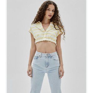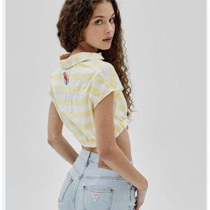 Guess Women’s originals x J-Balvin striped crop top yellow-white size S