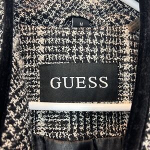 Guess Wool Blend Asymmetrical Mid Length Coat Sz M Plaid Vintage Black and White