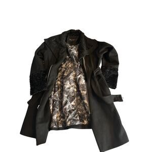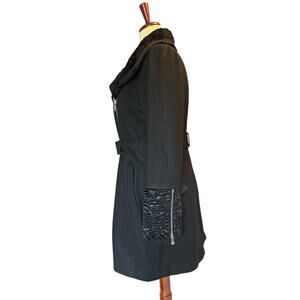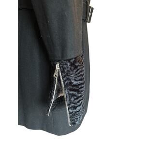 Guess Wool Blend Belted Coat XL Black Faux Fur Collar & Cuffs Winter Jacket