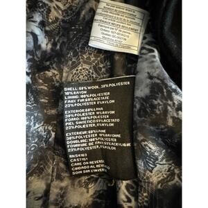Fabric Content: 60% Wool, 30% Polyester, 10% Rayon | Lining: 100% Polyester | Faux Fur: 69% Acetate, 23% Polyester, 8% Nylon