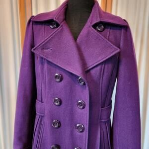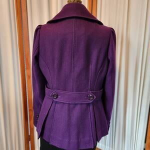 Guess Wool Blend Double Breasted Pea Coat Deep Purple Size Medium
