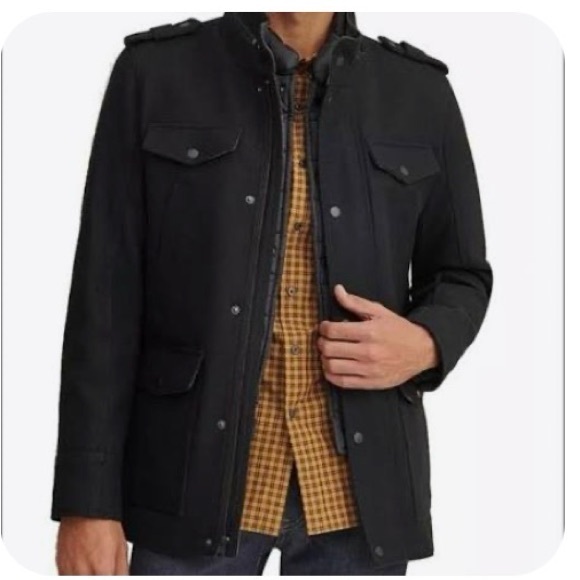 GUESS Men’s Military-Inspired Wool-Blend Coat.