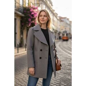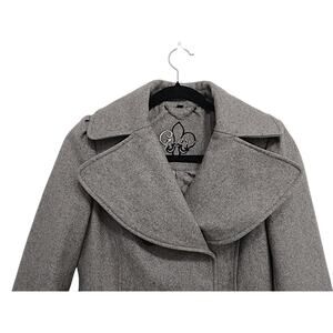 Guess Wool Pea Coat Womens Sz S Gray Double Breasted Large Lapel Collar Preppy