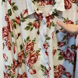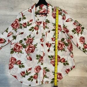 Guess XL Floral Rose Print 3/4 Sleeve Collared Blouse