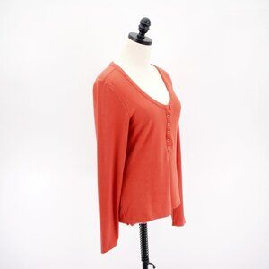 Guess XL Orange Scoop Neck Button Ribbed Polyester Rayon Sweater Long Sleeve