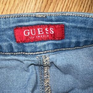 Guess XS Women's Denim Mini Skirt Logo Red Stripe Stretchy Blue Light Wash