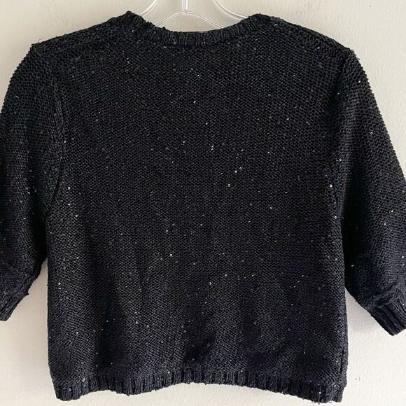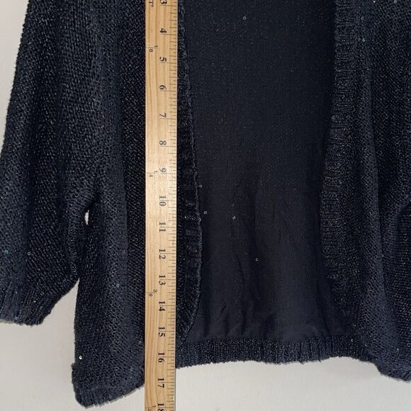 Guess Y2K Black Shrug S Cardigan Top Silver Sequined Sweater Open Round Front