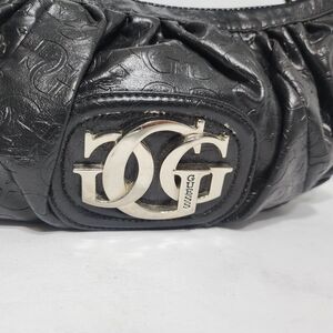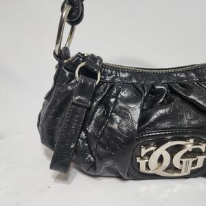 Guess Y2K Black Vegan Leather GGG Logo Embossed Mini Shoulder Hobo Bag Purse VTG