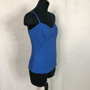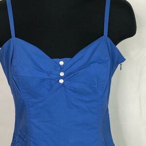 Y2K Blue Rose Embroidered Guess Zip Up Tank Top.