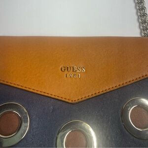 Guess Y2K Brown and Blue Crossbody Bag with Metallic Accents Adjustable Strap
