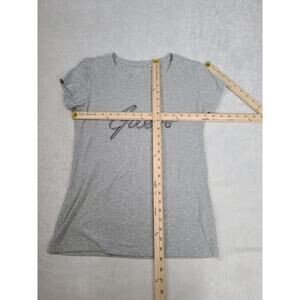 Guess Y2K Ladies plaid ribbon logo t-shirt Grey Size XL Vintage Bling Mcbling