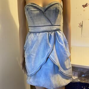 Guess Y2K Lubov Bubble AcidWash Denim Strapless Bustier BlueJean MiniDress 1/XS